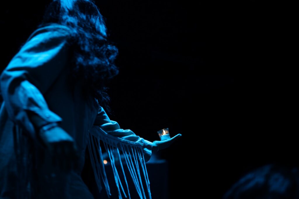 restore a sense of wholeness. Layered with the rhythms of the cumbia genre, the performance carries